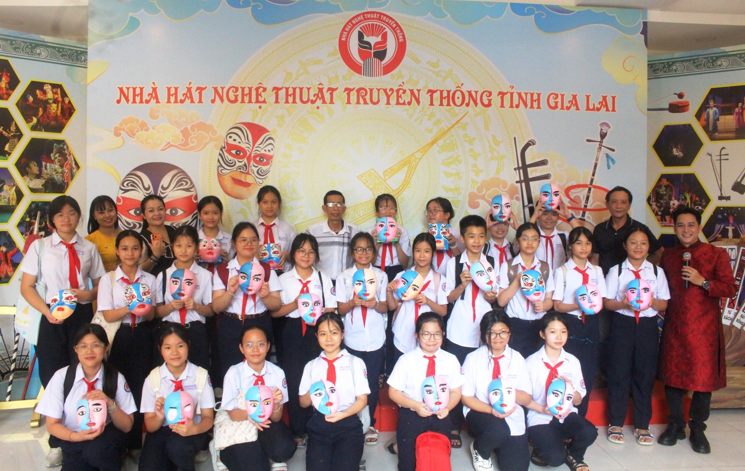 Song hành với đó là các hoạt động giao lưu, trải nghiệm nghệ thuật Tuồng và Ca kịch Bài chòi tại Nhà hát nghệ thuật truyền thống tỉnh của hơn 500 học sinh THCS trên địa bàn. Các em được tham quan Phòng truyền thống Nhà hát, xem và nghe giới thiệu về lịch sử hình thành và phát triển của Nhà hát; trang phục, đạo cụ, mặt nạ Tuồng, tiểu sử và công đóng góp của Hậu tổ Tuồng Đào Tấn đối với nghệ thuật Tuồng; giới thiệu về một số hình ảnh, thành tích tiêu biểu của nghệ thuật Bài chòi. Đặc biệt là hoạt động thực hành trải nghiệm vẽ mặt nạ Tuồng cho gần 100 học sinh của 3 trường THCS: Đống Đa, Lê Hồng Phong, Nguyễn Huệ. Với hoạt động bổ ích, thú vị này đã gây hứng thú cho học sinh trong việc phát huy năng khiếu vẽ của bản thân, ứng dụng vào việc vẽ mặt nạ Tuồng rất hữu ích. Sau 03 đợt thi vẽ mặt nạ, Nhà hát đã tổ chức chấm và trao 02 giải Nhất, 02 giải Nhì và 06 giải Ba cho các em học sinh của 3 trường và đã có những phần quà động viên, khích lệ các em kịp thời, thiết thực.
