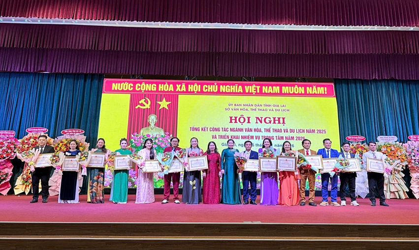 Ngày 06/01/2026, tại Trung tâm Hội nghị tỉnh (phường Quy Nhơn, tỉnh Gia Lai), Sở Văn hóa, Thể thao và Du lịch tỉnh Gia Lai đã tổ chức Hội nghị tổng kết công tác ngành Văn hóa, Thể thao và Du lịch năm 2025 và triển khai nhiệm vụ công tác năm 2026. Tham dự Hội nghị có các đồng chí đại diện lãnh đạo Ủy ban Nhân dân tỉnh Gia Lai; đại diện lãnh đạo các Sở, ban, ngành; các cơ quan, đơn vị, xã, phường trên địa bàn tỉnh; các đơn vị trực thuộc Sở Văn hóa, Thể thao và Du lịch; cùng phóng viên các cơ quan thông tấn báo chí Trung ương và địa phương.