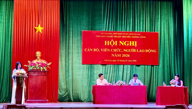 Tại Hội nghị, viên chức và người lao động của Nhà hát đã tham gia các ý kiến, đề xuất nhằm phát huy những kết quả, thành tích đã đạt được và các giải pháp để thực hiện hiệu quả những mục tiêu, nhiệm vụ trọng tâm trong năm 2026 như: đề nghị lãnh đạo Sở quan tâm, tạo điều kiện nâng cấp cơ sở vật chất rạp biểu diễn; quan tâm chăm lo, nâng cao đời sống vật chất và tinh thần cho viên chức và người lao động; quan tâm công tác đào tạo, bồi dưỡng nguồn nhân lực kế cận cho Nhà hát; tổ chức các lớp tập huấn, bồi dưỡng chuyên môn giúp nghệ sĩ trau dồi kiến thức chuyên môn, nâng cao kỹ năng, kỹ thuật biểu diễn; tăng cường công tác tuyên truyền, quảng bá hai loại hình nghệ thuật truyền thống Tuồng và Ca kịch Bài chòi tiêu biểu của tỉnh.