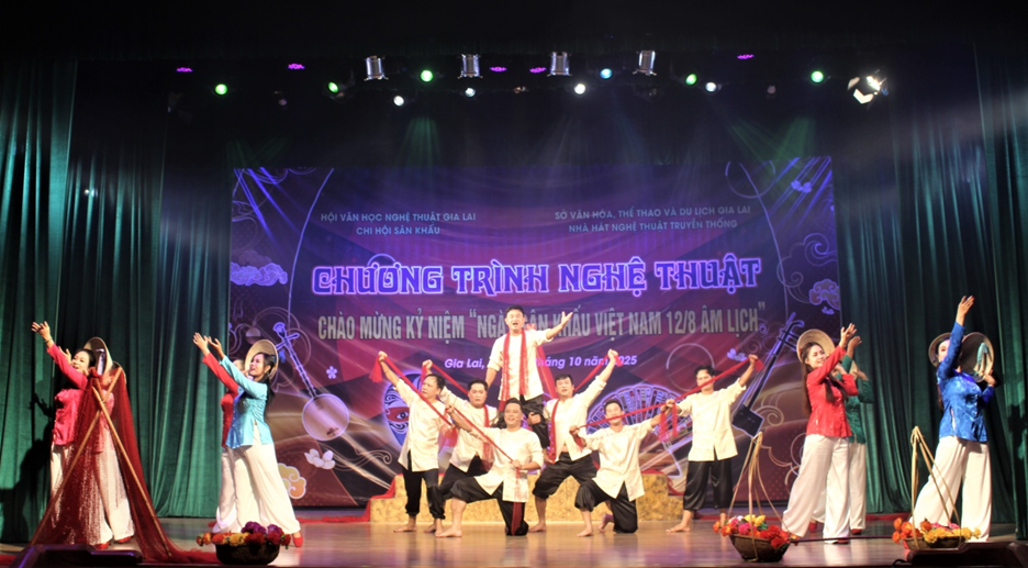 Tối ngày 01/10, tại Nhà hát Nghệ thuật truyền thống tỉnh, Chi hội Sân khấu Gia Lai phối hợp với Nhà hát Nghệ thuật truyền thống tỉnh tổ chức Chương trình nghệ thuật kỷ niệm Ngày Sân khấu Việt Nam (12/8 âm lịch).