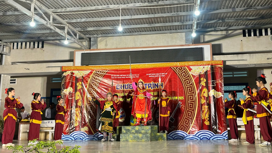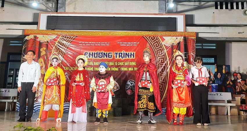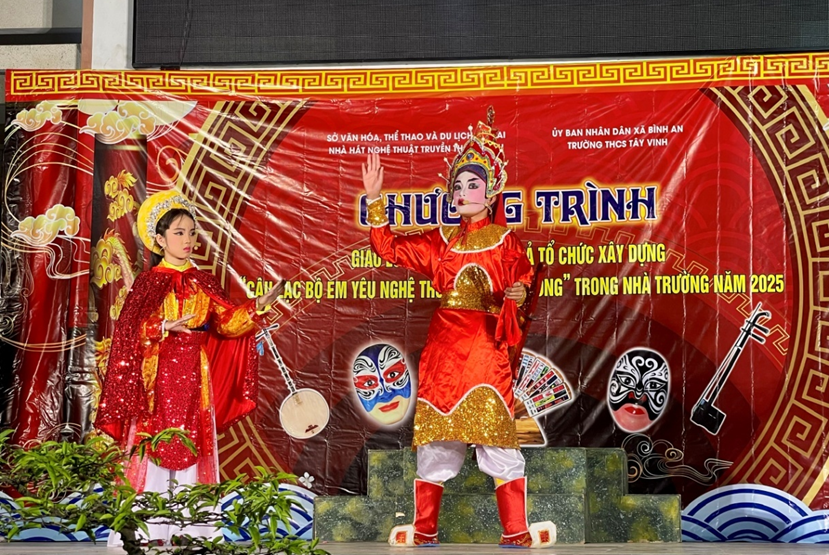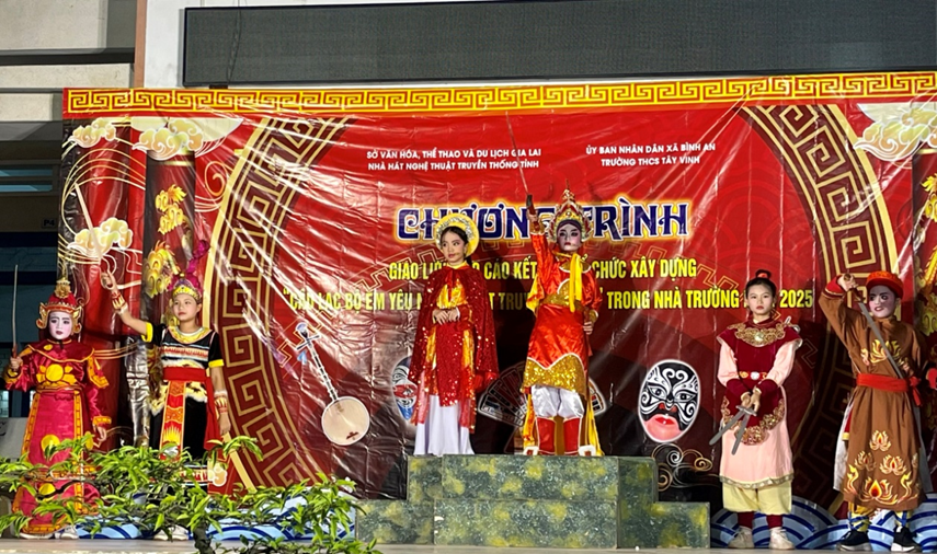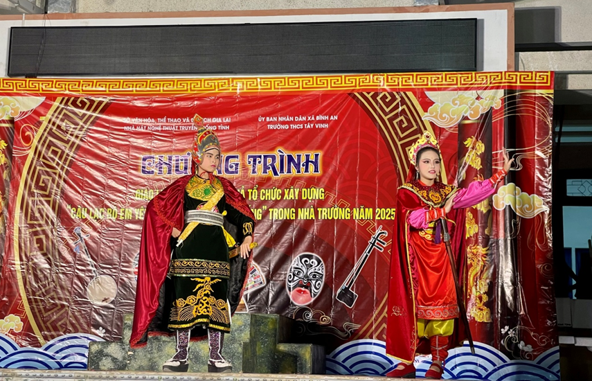 Thực hiện Chương trình học tập, giáo dục truyền thống nghệ thuật sân khấu Tuồng (Hát bội) và Ca kịch Bài chòi trong và ngoài nhà trường năm 2025; được sự thống nhất với Trường THCS Tây Vinh, Nhà hát Nghệ thuật truyền thống tỉnh tổ chức chương trình giao lưu, báo cáo kết quả tổ chức xây dựng “Câu lạc bộ em yêu nghệ thuật truyền thống” vào đêm ngày 07/12/2025.