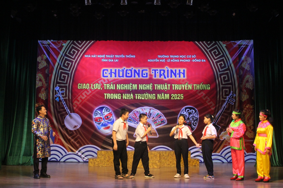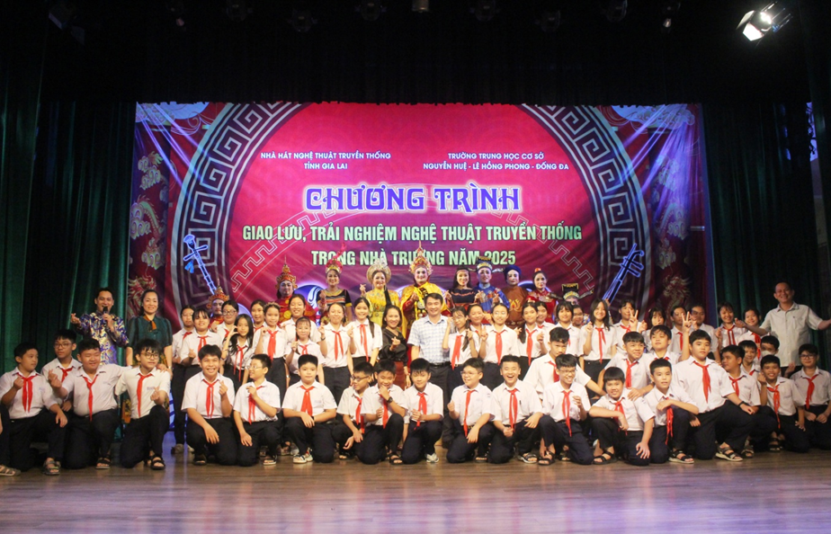 Thực hiện kế hoạch phối hợp giữa Sở Văn hóa, Thể thao và Du lịch với Sở Giáo dục và Đào tạo nhằm thực hiện chương trình học tập, giáo dục truyền thống nghệ thuật sân khấu Tuồng và Ca kịch Bài chòi trong và ngoài nhà trường, giai đoạn 2023 - 2026; từ ngày 16- 18/10/2025, Nhà hát Nghệ thuật truyền thống tỉnh phối hợp với các trường THCS: Nguyễn Huệ, Lê Hồng Phong, Đống Đa tổ chức "Chương trình giao lưu, trải nghiệm nghệ thuật truyền thống trong nhà trường năm 2025" cho học sinh tại Nhà hát Nghệ thuật truyền thống tỉnh (số 590 Nguyễn Thái Học, phường Quy Nhơn Nam).