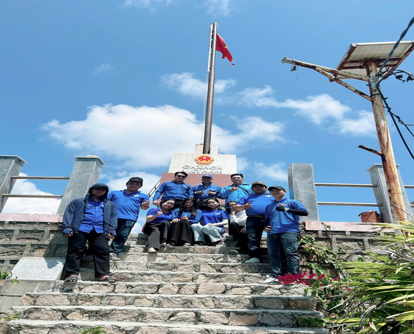 Đoàn viên Chi đoàn chụp ảnh lưu niệm tại Cột cờ Thanh niên
